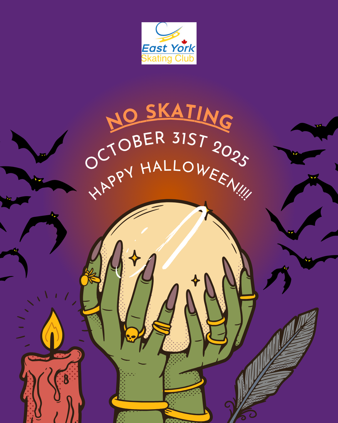 There will be no skating on Friday, October 31, on Halloween.