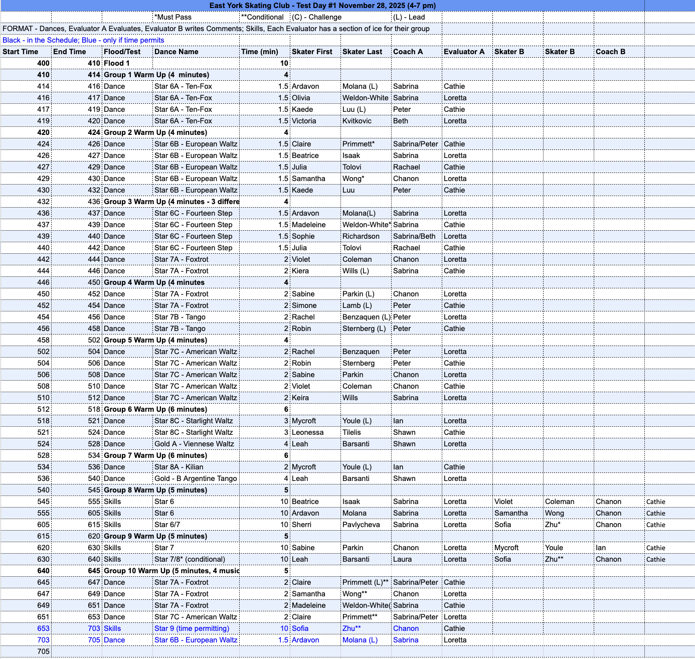 Competition outfits and East York Skating Club jackets are encouraged, but not mandatory.